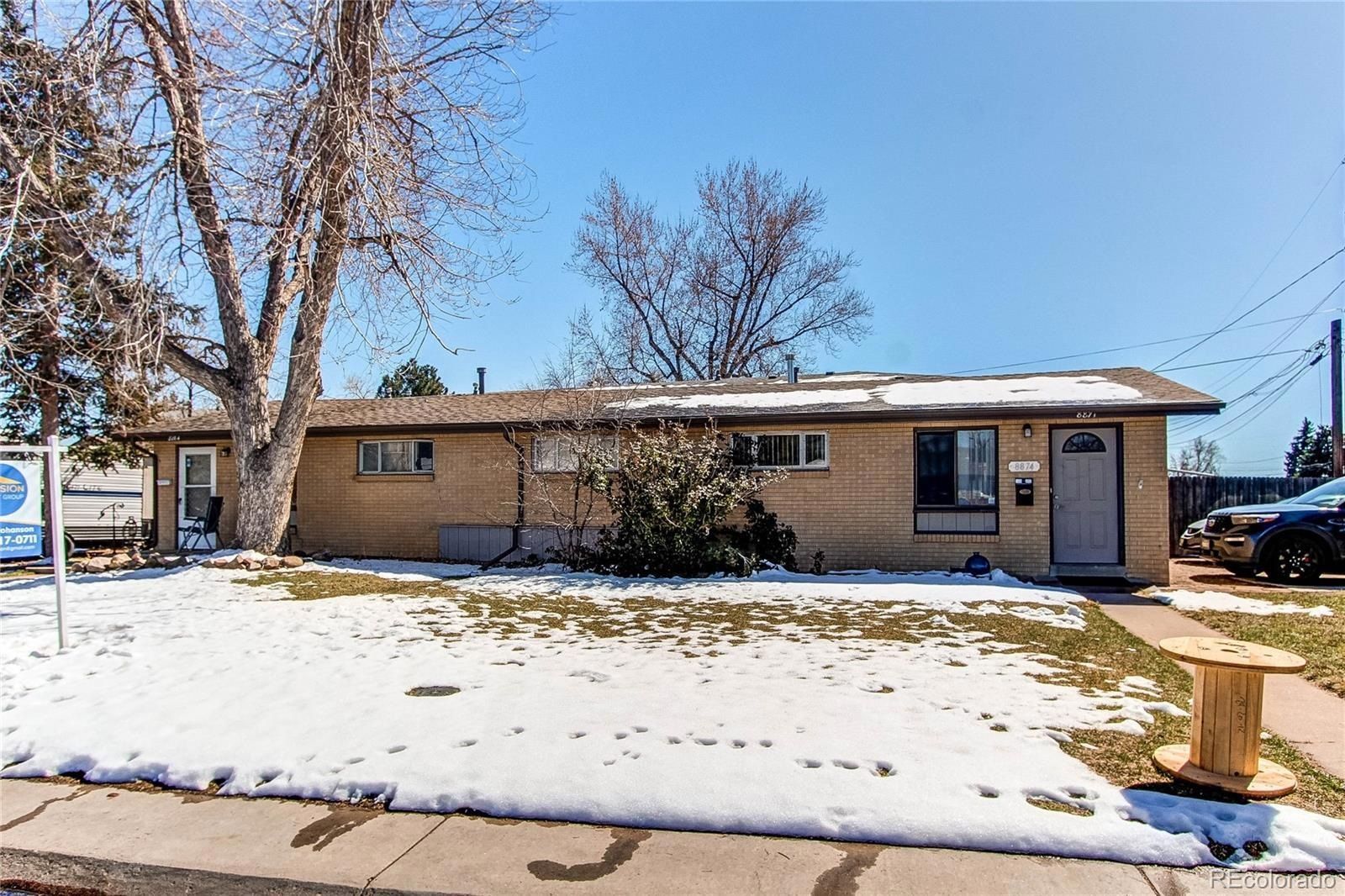 This is a remarkable opportunity to own a duplex with both sides in Olde Town Arvada. Midcentury modern with vaulted ceilings and open floor plan. Updates in both units with newer kitchen, appliances and bath in unit 8874. Unit 8864 has an updated bath and nice kitchen. Hardwood floors, newer hotwater heaters & roof. Semi private fenced yards for each unit with a shed. Unit 8864 has ample off street parking and a 1 car garage. 8874 has easy off street parking for 2 vehicles. Front yard trees and yard and easy maintenance back yard. Light rail, RTD bus a few blocks into Olde Town. Terrace Park, Costco and shopping all near by. Lease in unit 8864 thru 3/2025 at $1560/month. Unit 8874 vacant and able to show, identical to 8864. This property qualifies for a CRA Loan with no income limit and 2% back of your loan amount towards closing costs.